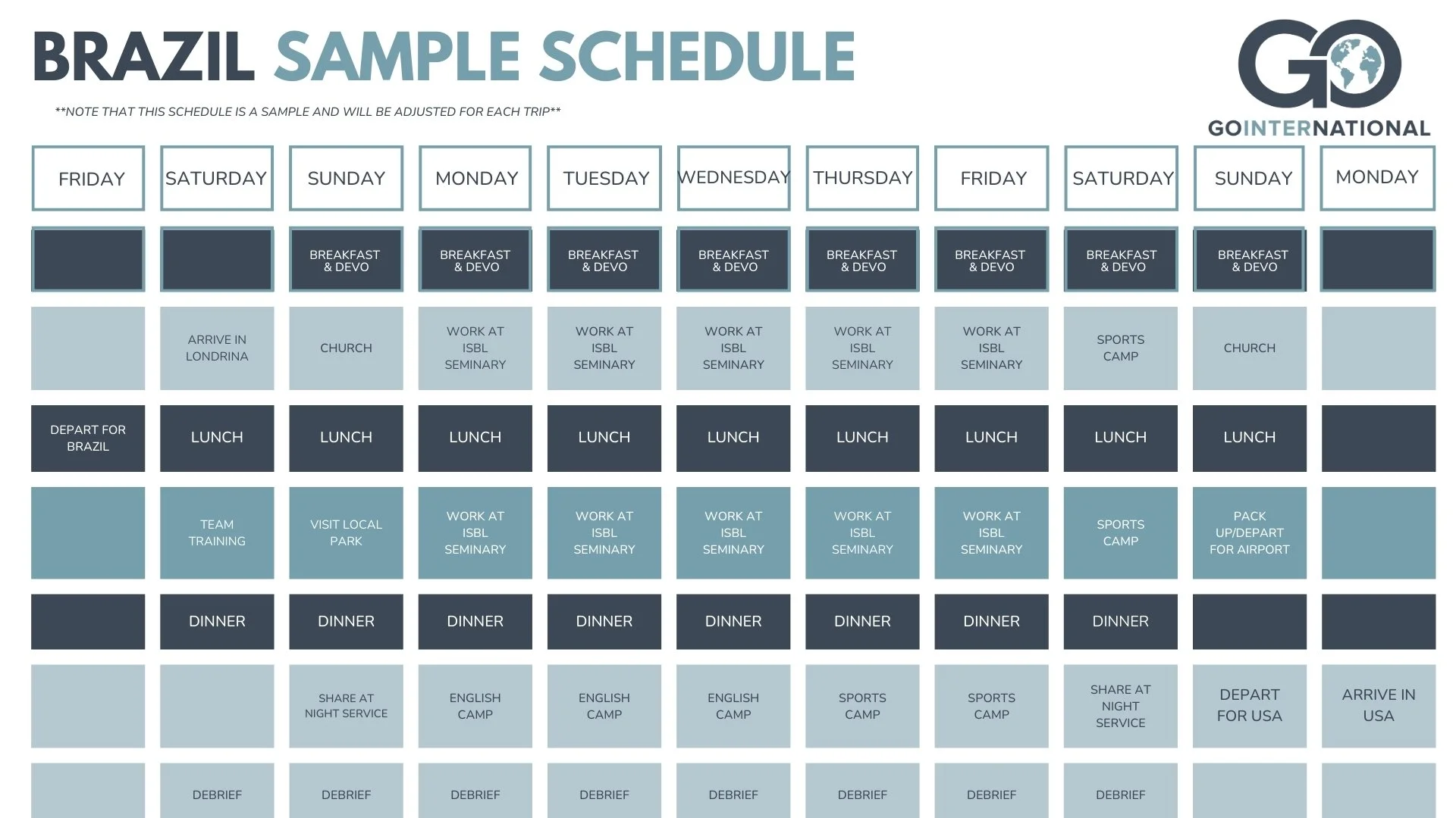 At Go InterNational, participant safety is our top priority. Our internal team and external consultants use a multi-layered risk management approach, including monitoring global reports and collaborating with ministry partners on the ground. We enforce safety protocols, such as requiring students to be with an adult, while our hosts provide location-specific guidelines. Our team leaders have been trained in risk management principles and have both on-field and home-office support to ensure a secure experience.